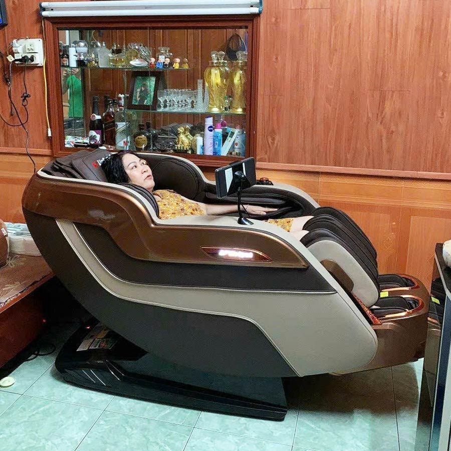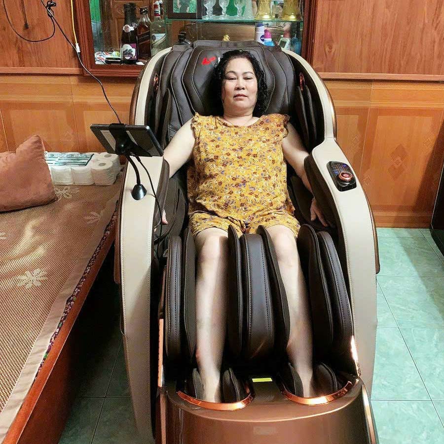 Cô Minh chia sẻ: “Cô rất bất ngờ khi được con trai tặng ghế massage, và cô thấy ghế mát xa đã thiệt con ơi, ngày nào cô cũng ngồi tầm 1-2 tiếng, ngồi ghế giúp cô đỡ đau mỏi rất nhiều…“