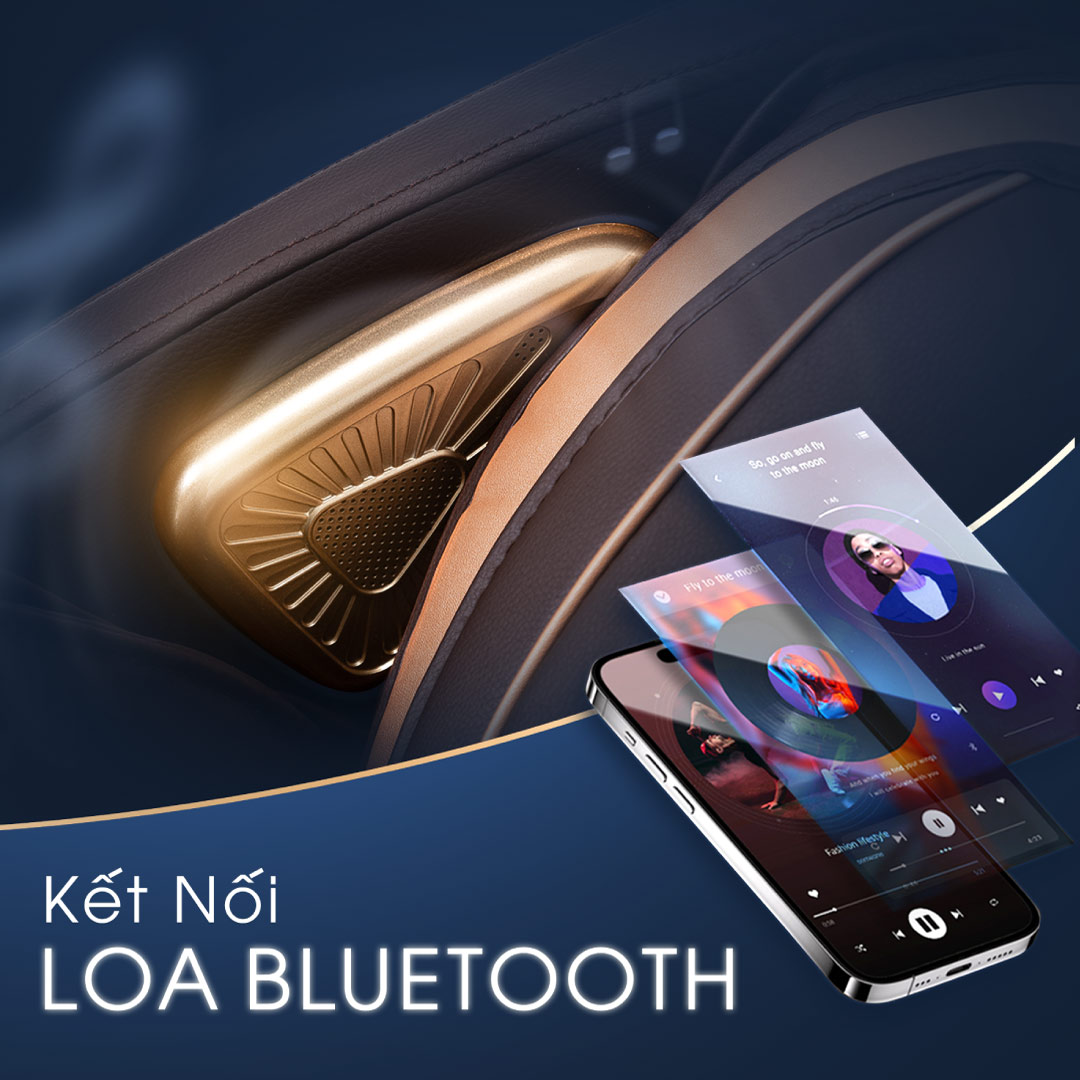 Không chỉ là thiết bị hỗ trợ chăm sóc sức khỏe, thiết bị này còn giúp bạn thư giãn đỉnh cao với hệ thống kết nối loa bluetooth hiện đại, cho phép người dùng vừa nằm ghế vừa nghe bất kỳ âm thanh yêu thích nào.