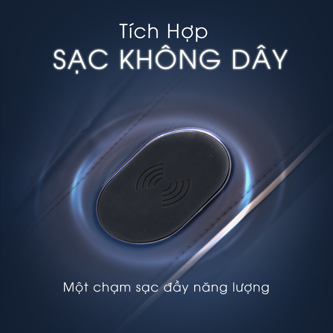 Ghế massage LS-359 Luxury tích hợp cổng sạc không dây và cổng sạc USB, nạp đầy pin một cách tiện lợi, giúp bạn không cần phải lo lắng điện thoại hết pin khi đang thư giãn.