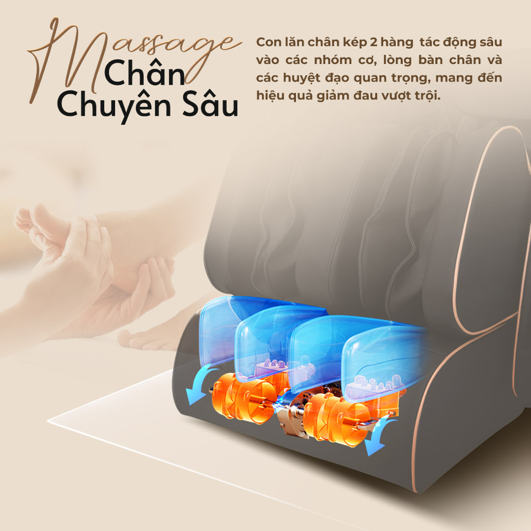 Không chỉ sở hữu khả năng massage đỉnh cao, ghế còn tích hợp thêm nhiệt ấm ở vùng eo, bạn chân. Đây là 2 vị trí trọng điểm, cần được chăm sóc tối ưu trên cơ thể.