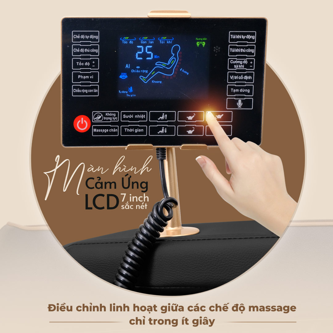 Trên ghế LS-666, bạn có thể tùy ý điều khiển với 3 cách: bằng giọng nói, màn hình, phím tắt. Tiện lợi hơn hết là dùng chính giọng nói của mình để ra lệnh cho ghế. Dù là người lớn tuổi hay ít rành về công nghệ vẫn có thể sử dụng vô cùng nhanh chóng.