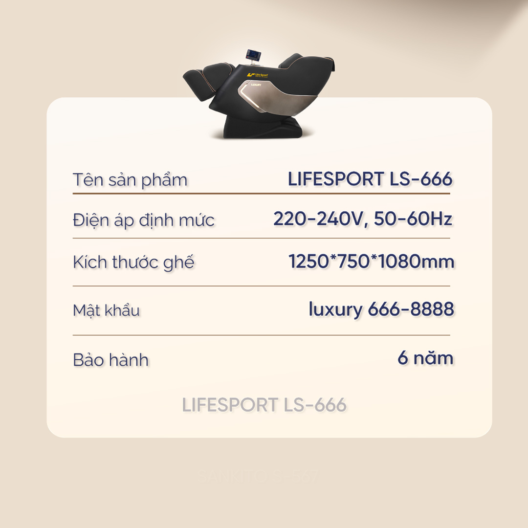 Cảm ơn anh đã tin tưởng và lựa chọn ghế massage LS-666 ạ, Lifesport chúc anh có nhiều sức khỏe và niềm vui mỗi ngày ạ.