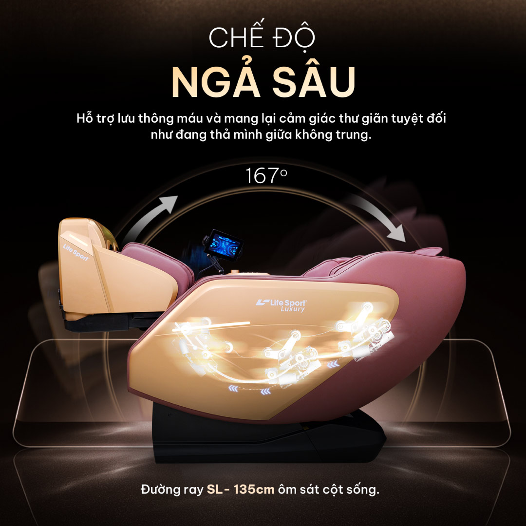 Ghế massage Lifesport LS-682 mang đến tư thế nằm ghế thoải mái với chế độ không trọng lực kép, giúp bạn giảm áp lực lên cột sống, tăng tuần hoàn máu và mang lại cảm giác thư giãn cực đã.