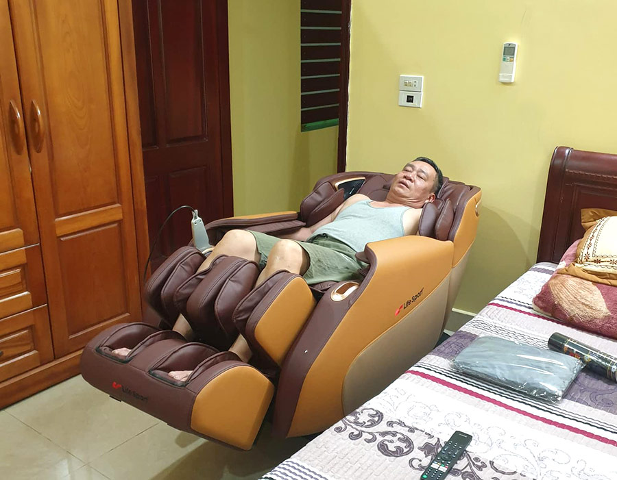 Khách hàng đang nằm ghế massage tại nhà